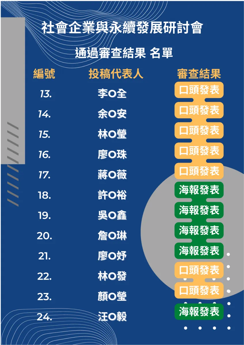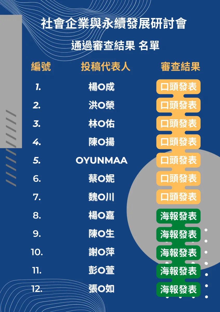2022 社會企業與永續發展研討會 通過審查結果名單